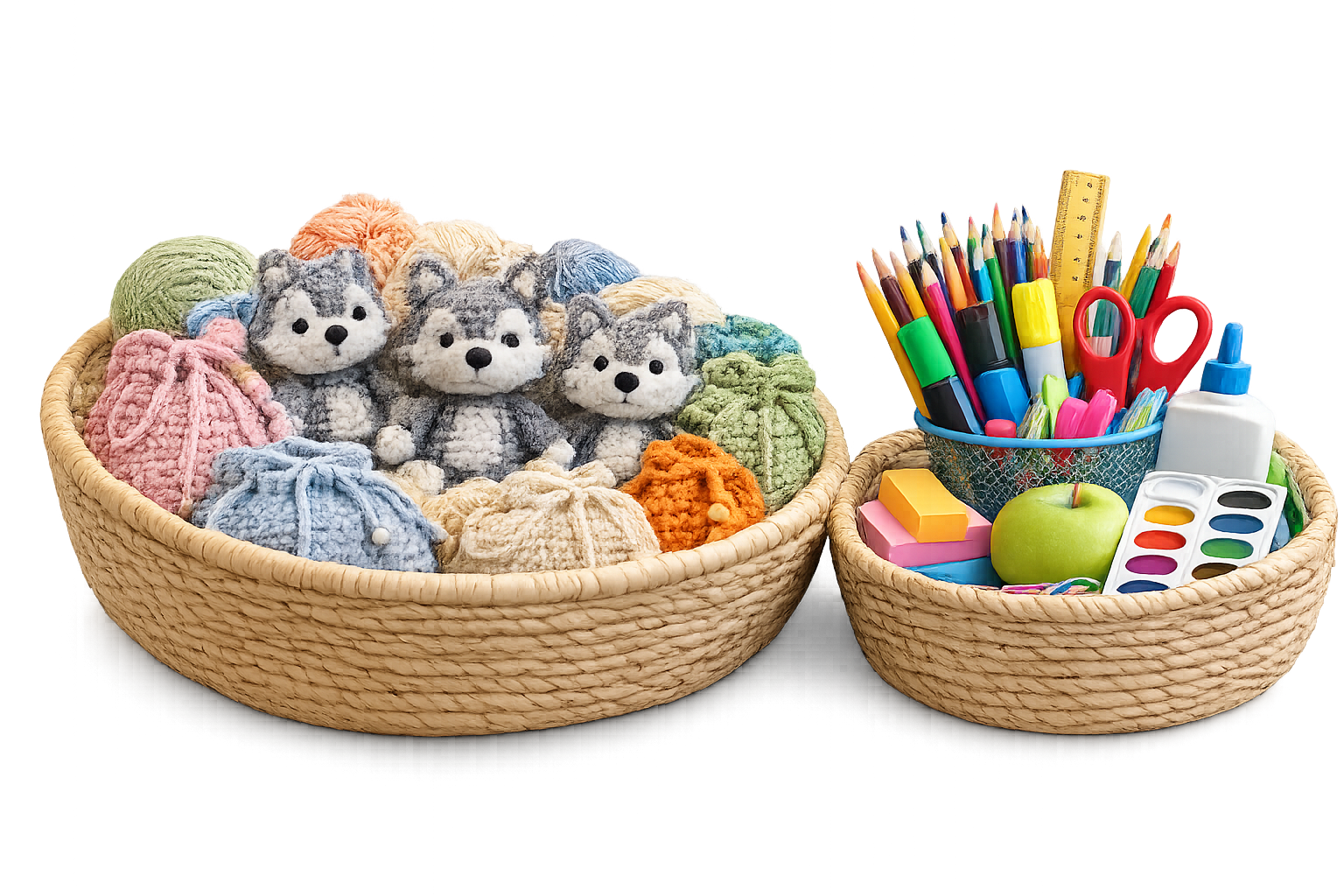 Our volunteers create handmade crochet items, including bags, accessories, and small stuffed animals.