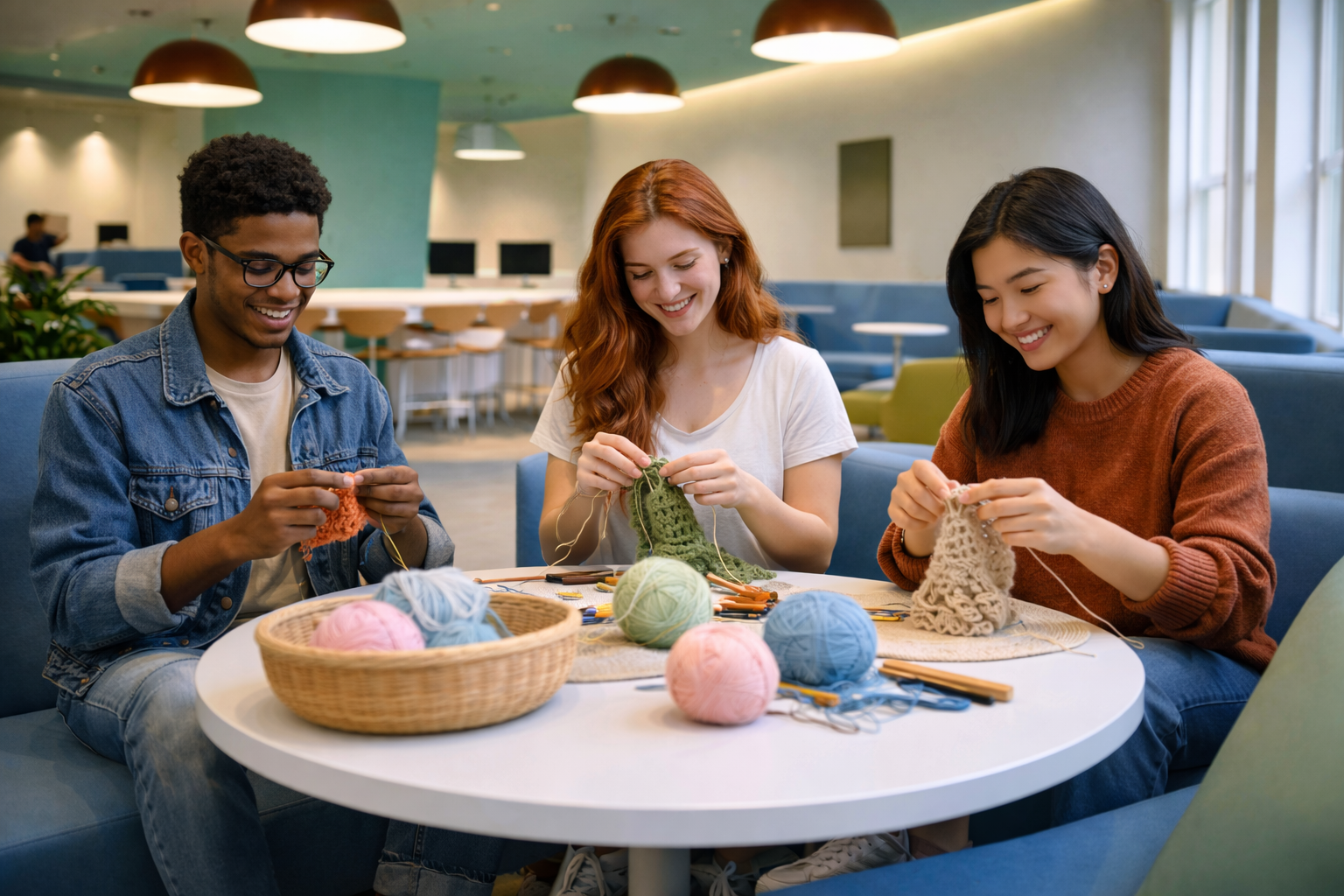 A table. A few chairs pulled closer together. Yarn passing from one pair of hands to another. Conversations unfolding slowly as stitches take shape. On the surface, it looks like a group of students crocheting. But beneath that simplicity, something larger is happening.